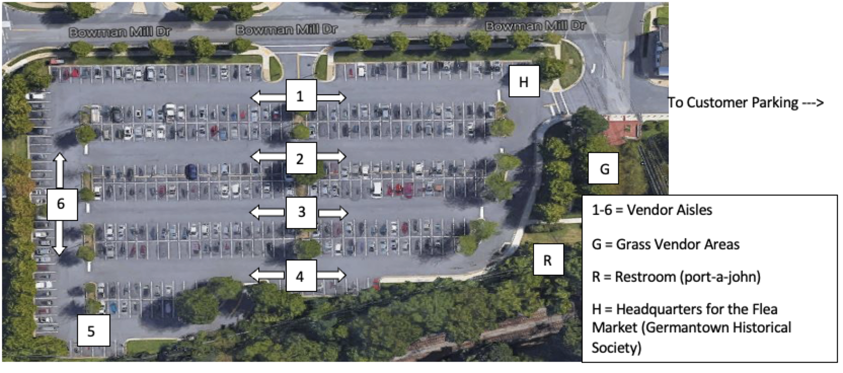- PARK ONLY IN DESIGNATED SLOTS. MUST park car within your selling space (no parking in grass) or OUTSIDE the Vendor LOT.